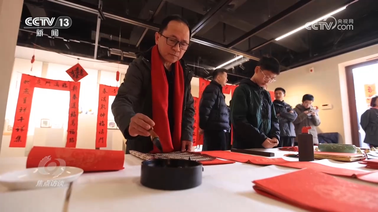 浙江海宁市青少年宫主任葛曙明:“一副小小的春联其实承载着很厚重的文化。楹联(习俗)是我们中国的非遗,书法也是在2009年列入了人类非物质文化遗产代表作名录。更重要的是今年我们的新春佳节,春节也列入了人类非物质文化遗产代表作名录,所以我觉得送春联是一件很有意义的事情。”