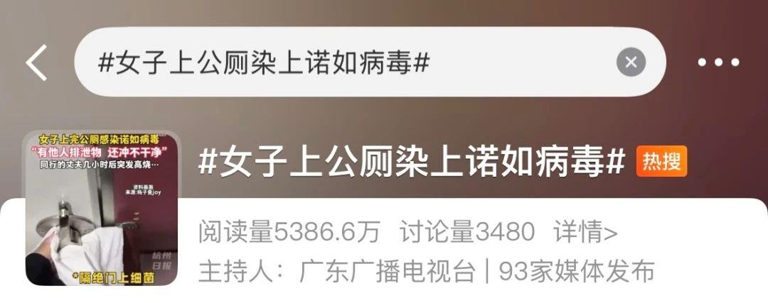 2月16日,广东一男子发帖表示,妻子在2月15日上完公厕后疑似感染了诺如病毒。