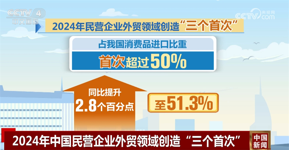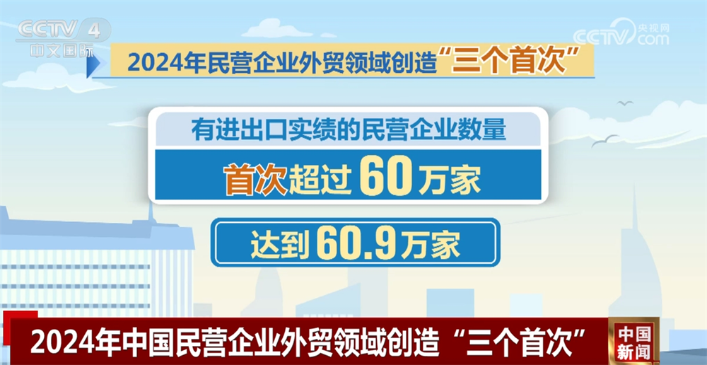 具体来看,第一个首次,是有进出口实绩的民营企业数量首次超过60万家,达到60.9万家,持续为外贸发展注入新生力量;