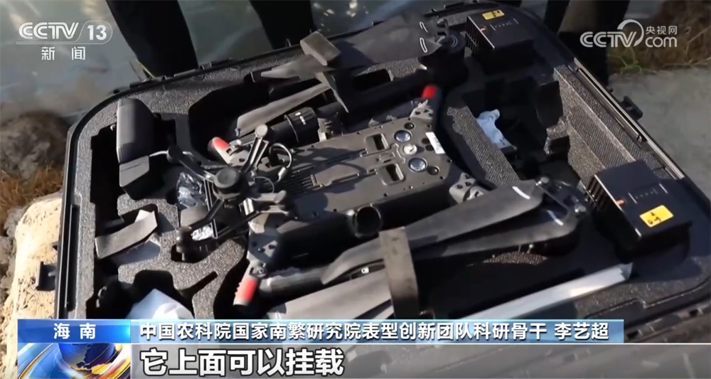 中国农科院国家南繁研究院表型创新团队科研骨干李艺超称:“有可能大家误以为你要出差,实际上你是去地里做实验。这个是我们目前正在使用的大疆的无人机,它上面可以挂载不同的传感器、挂在云台上面。这个是我们一个地面的激光雷达,它可以立在田间,对整个田块进行精确地扫描。这个仪器前面有一个像‘枪’一样的东西,我们把光纤穿进去之后,更多是能够获取光谱类的一些数据。”