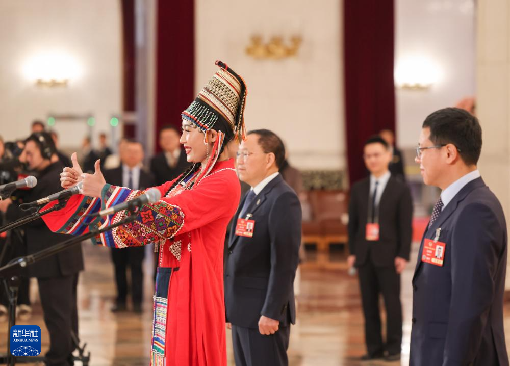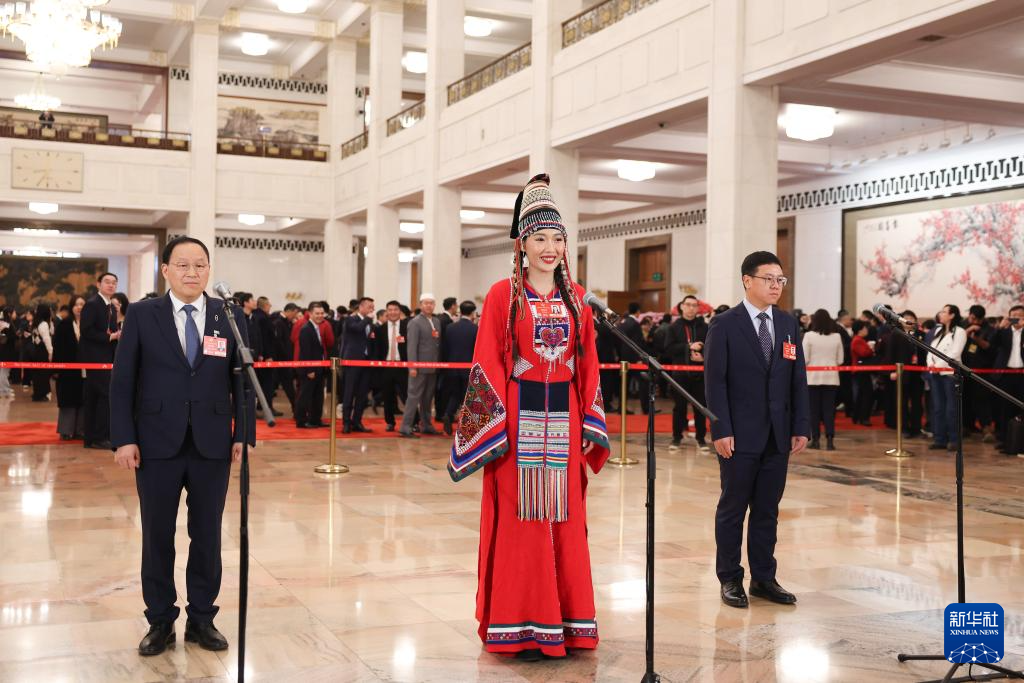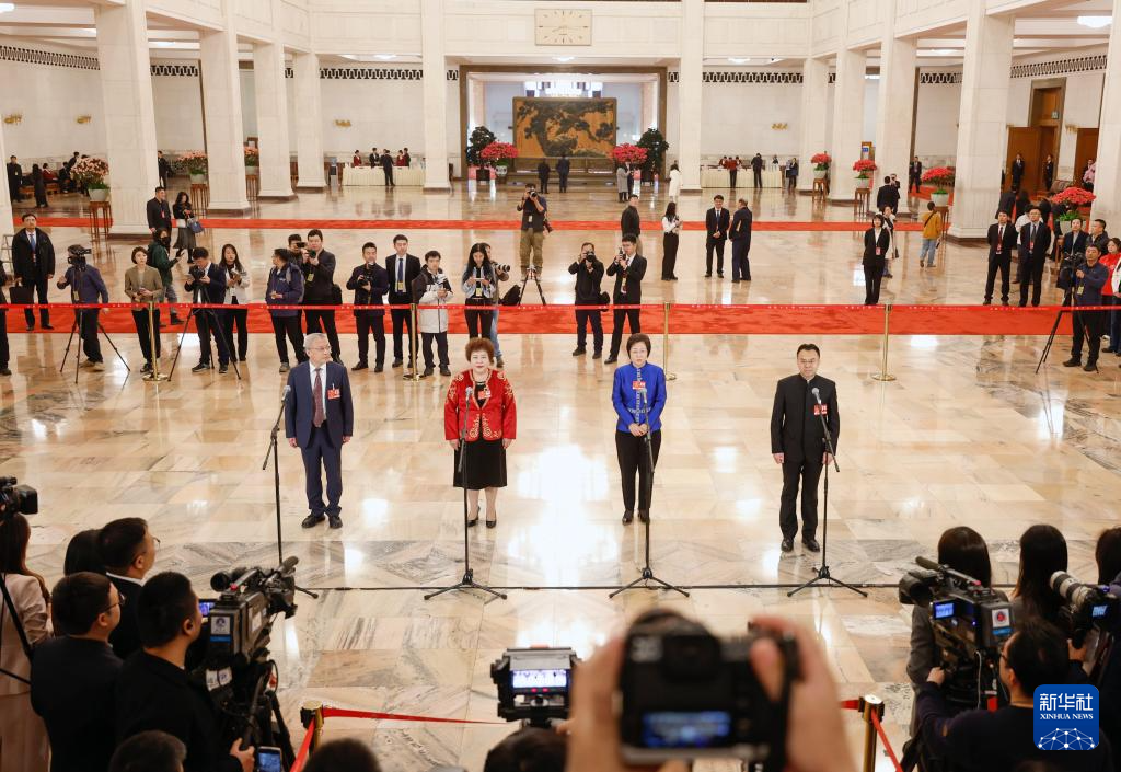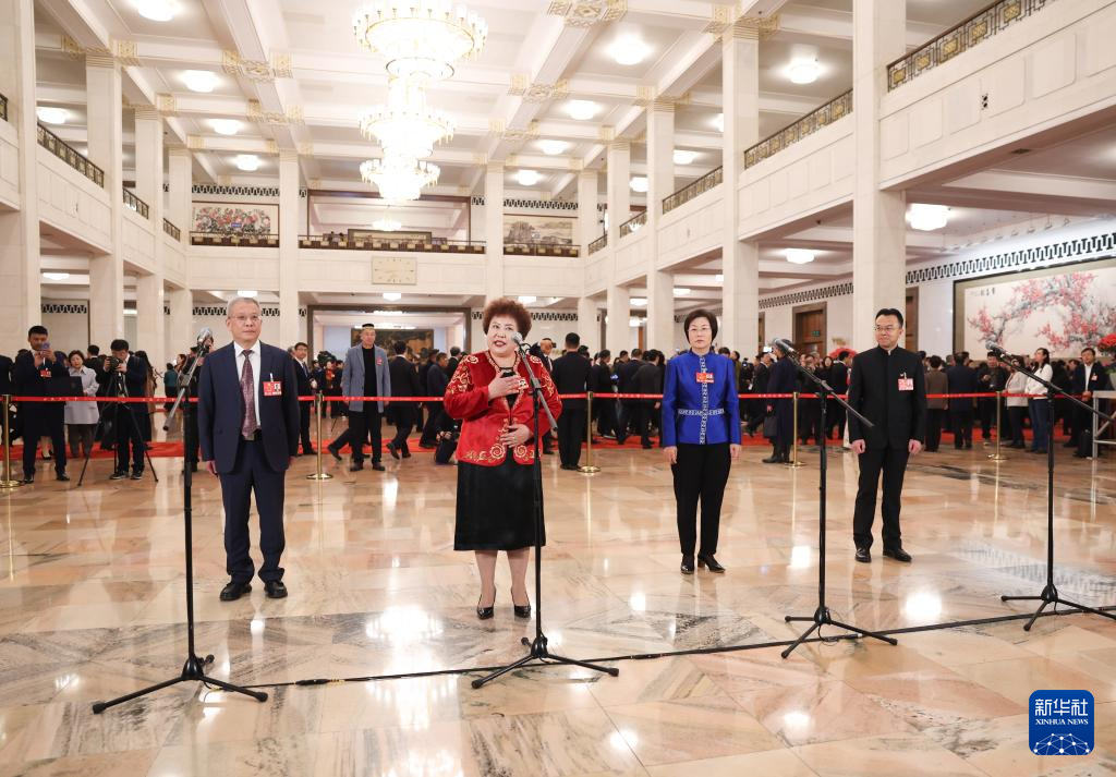 3月7日,全国政协十四届三次会议第二场“委员通道”集体采访活动在北京人民大会堂举行。新华社记者 殷刚 摄