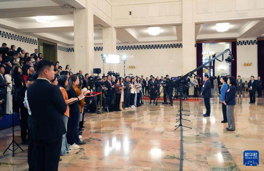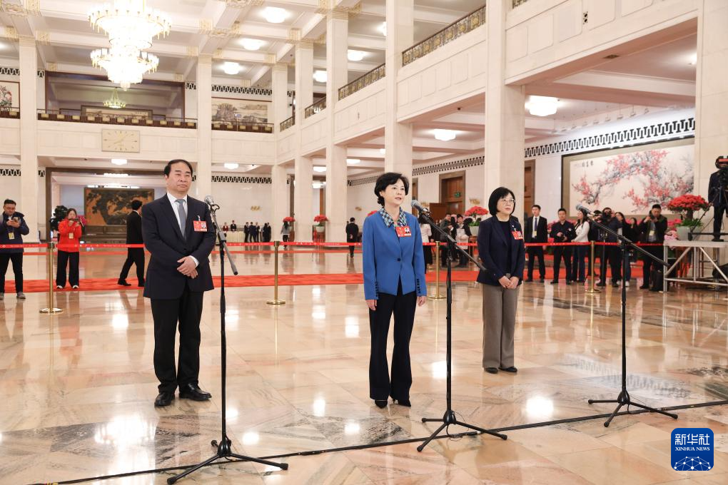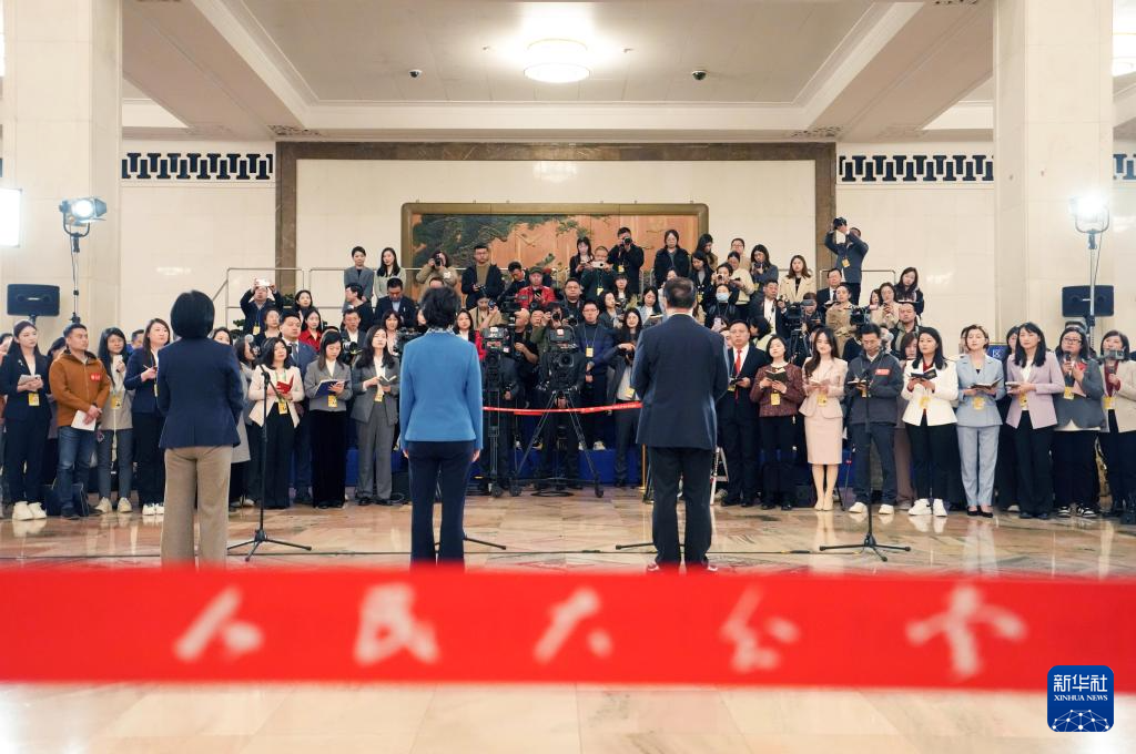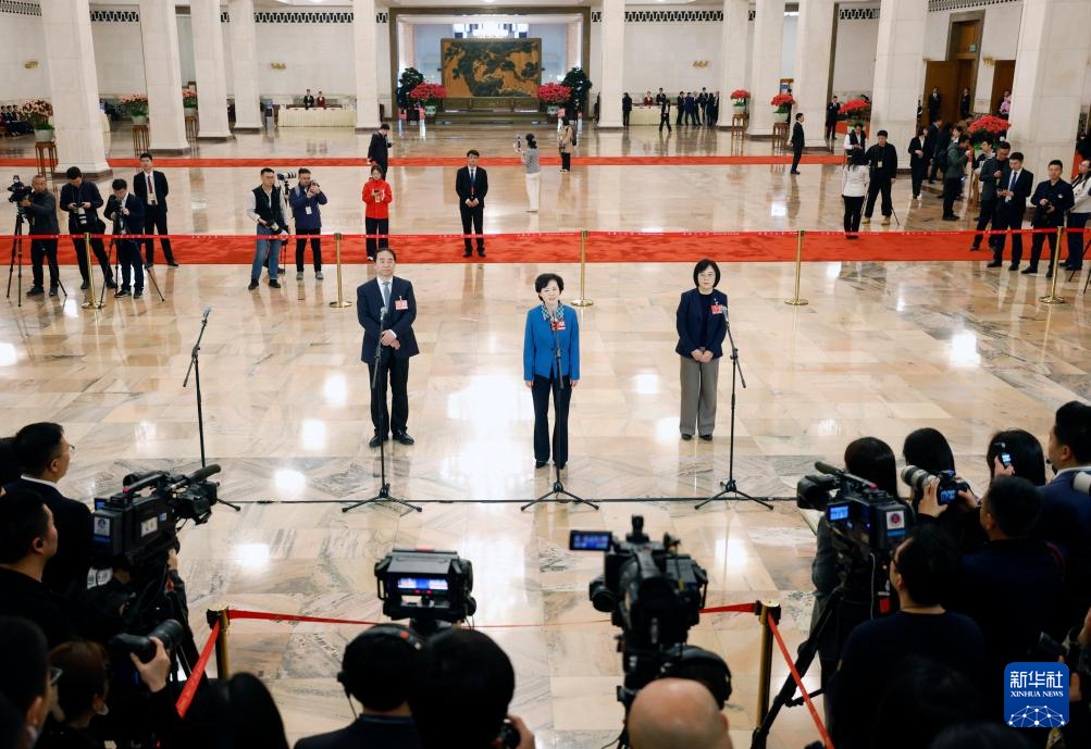 3月7日,全国政协十四届三次会议第二场“委员通道”集体采访活动在北京人民大会堂举行。新华社记者 张玉薇 摄