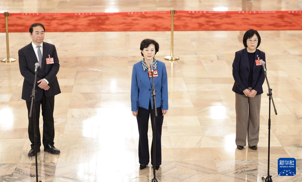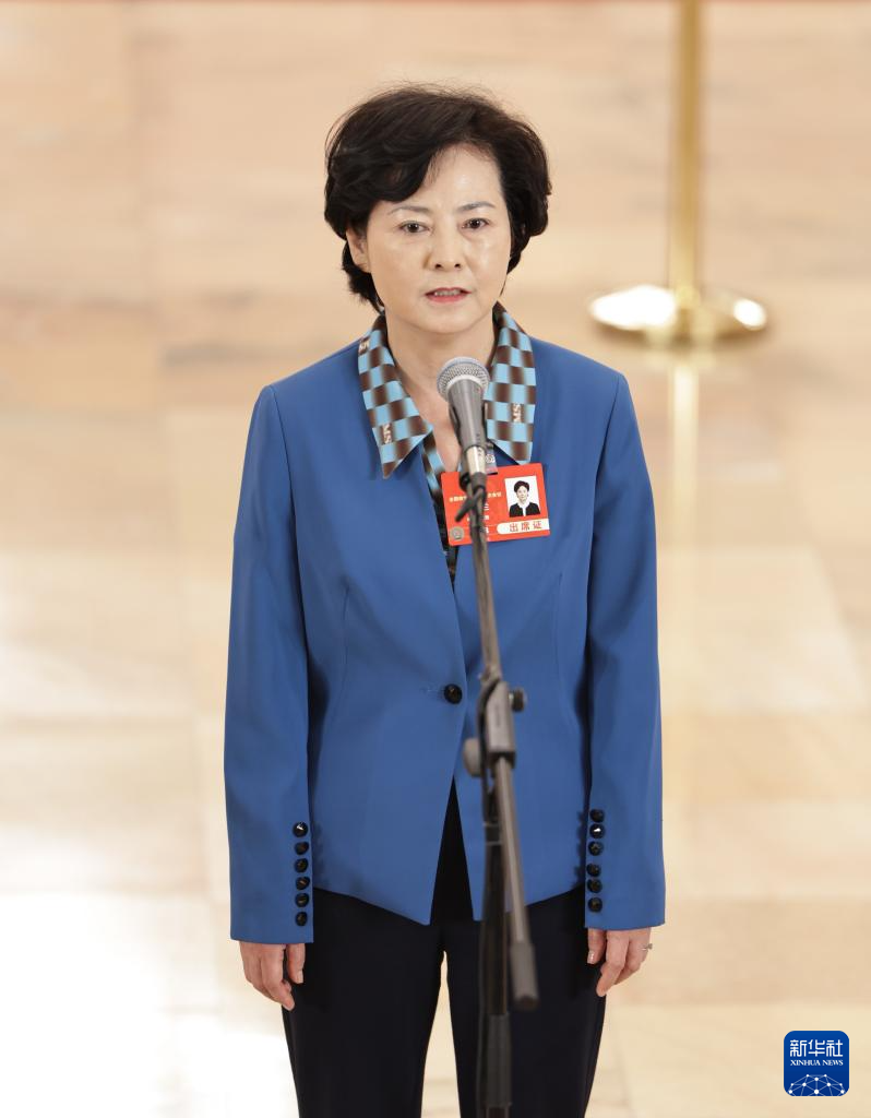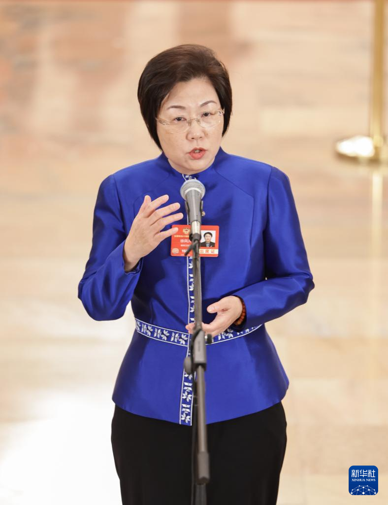 3月7日,全国政协十四届三次会议第二场“委员通道”集体采访活动在北京人民大会堂举行。这是全国政协委员徐晓兰接受媒体采访。新华社记者 张玉薇 摄