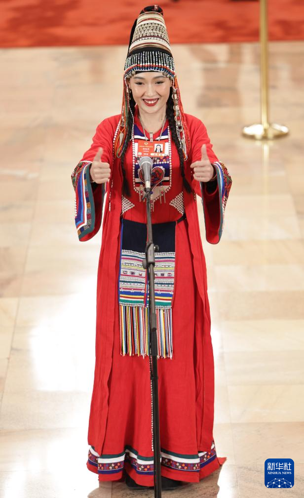 3月7日,全国政协十四届三次会议第二场“委员通道”集体采访活动在北京人民大会堂举行。这是全国政协委员杨钰尼接受媒体采访。新华社记者 殷刚 摄