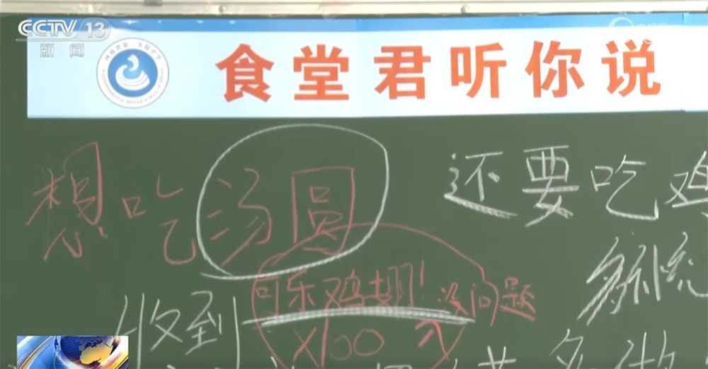 在河南省第二实验中学,学生们大课间时间在“食堂君听你说”的留言板写下心仪的菜名。食堂工作人员每日查看这些留言,并用红色粉笔给予回复,只要提议合理、食材健康,食堂便会认真采纳。