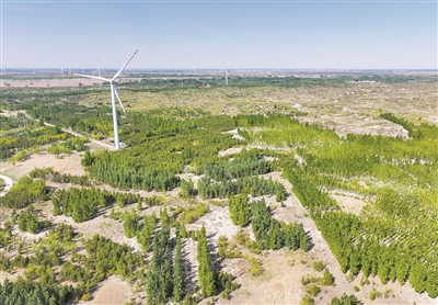 内蒙古自治区林草局副局长陈永泉说,当地通过创新工程融合机制,一体化推进防沙治沙和风电光伏建设,探索推广“板上发电、板下种植、板间养殖”立体化发展模式,实现了增绿、增能、增收多赢。
