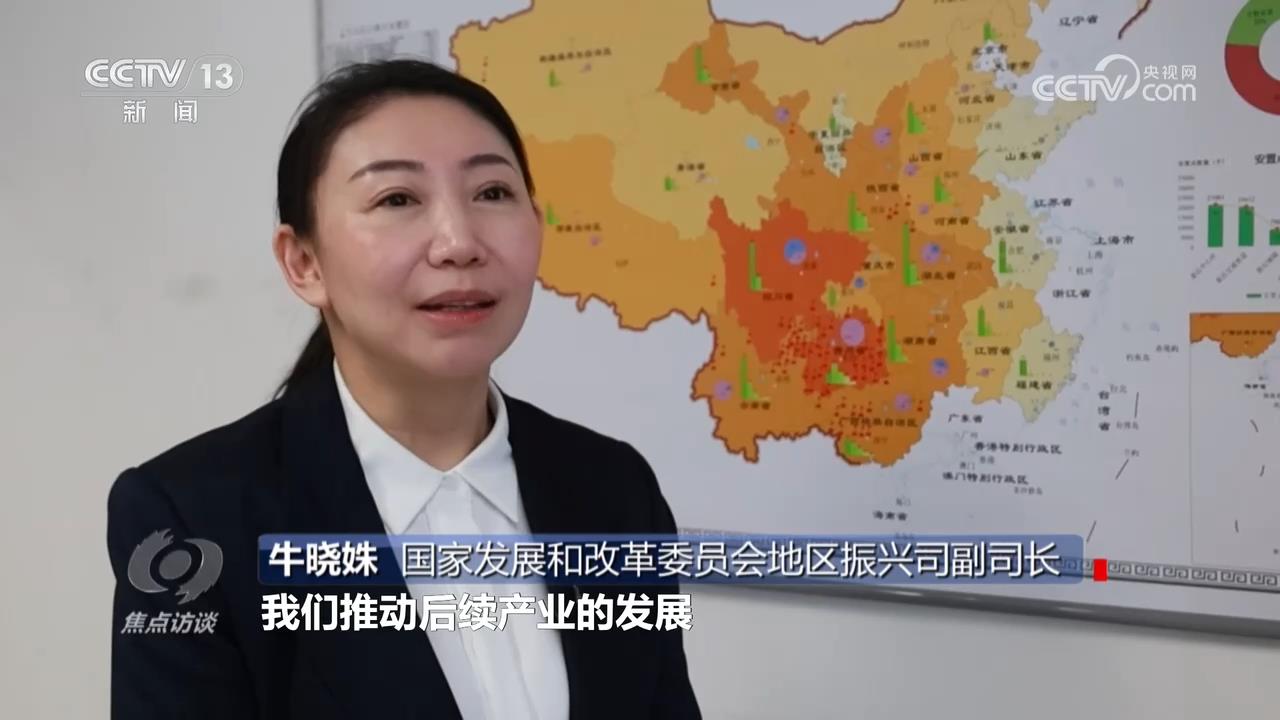 牛晓姝:“从这个‘十四五’全国易地搬迁后续扶持的任务图上,可以看出各省任务分布的情况。根据易地搬迁后续扶持任务,国家发展改革委切实履行了牵头部门的职责,会同农业农村部、人力资源和社会保障部,每年印发工作方案,细化了后续扶持的相关政策举措,压紧压实了地方主体责任。推动后续产业的发展和就业帮扶政策的有效推进落实。”