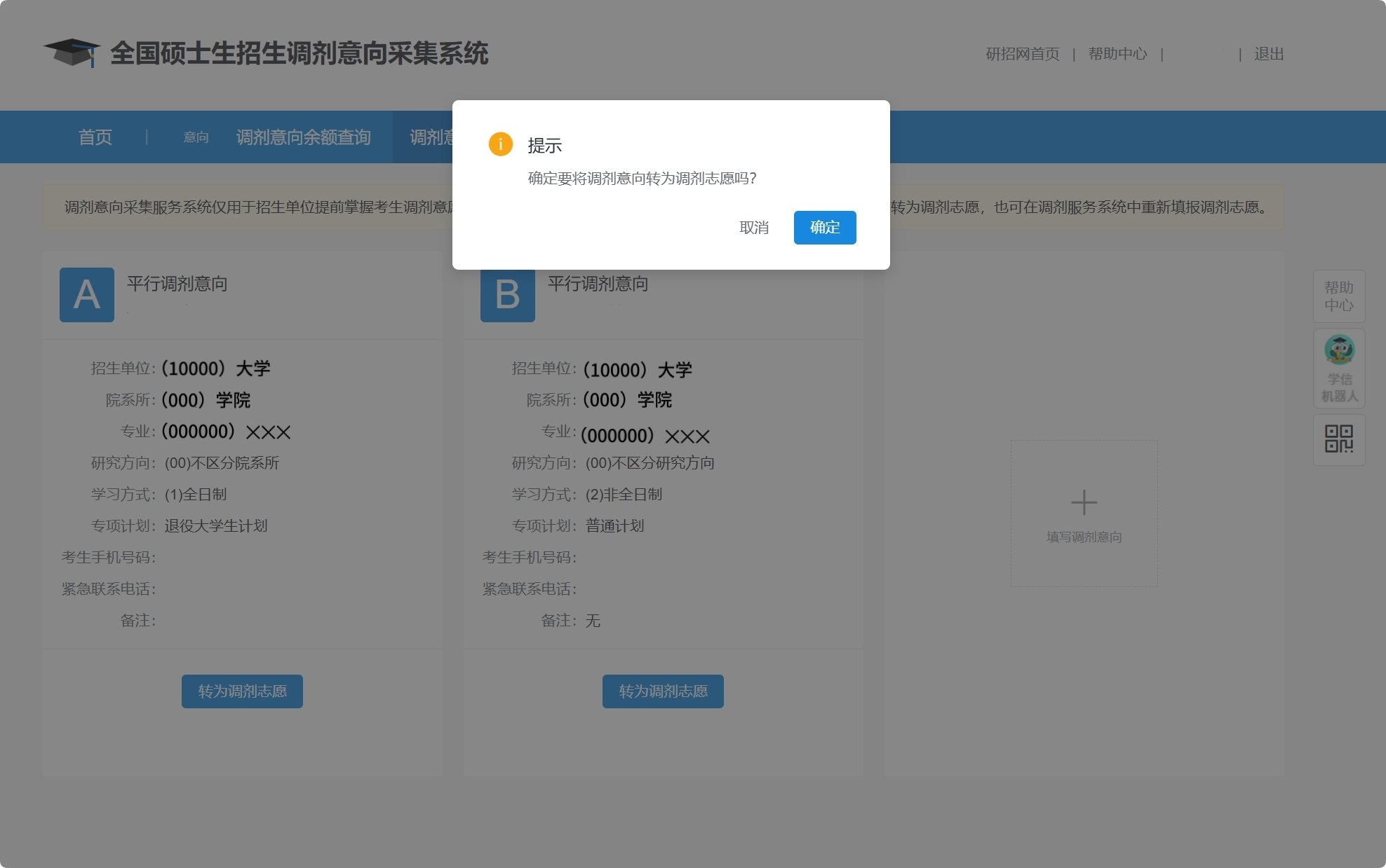 2、填写调剂意向