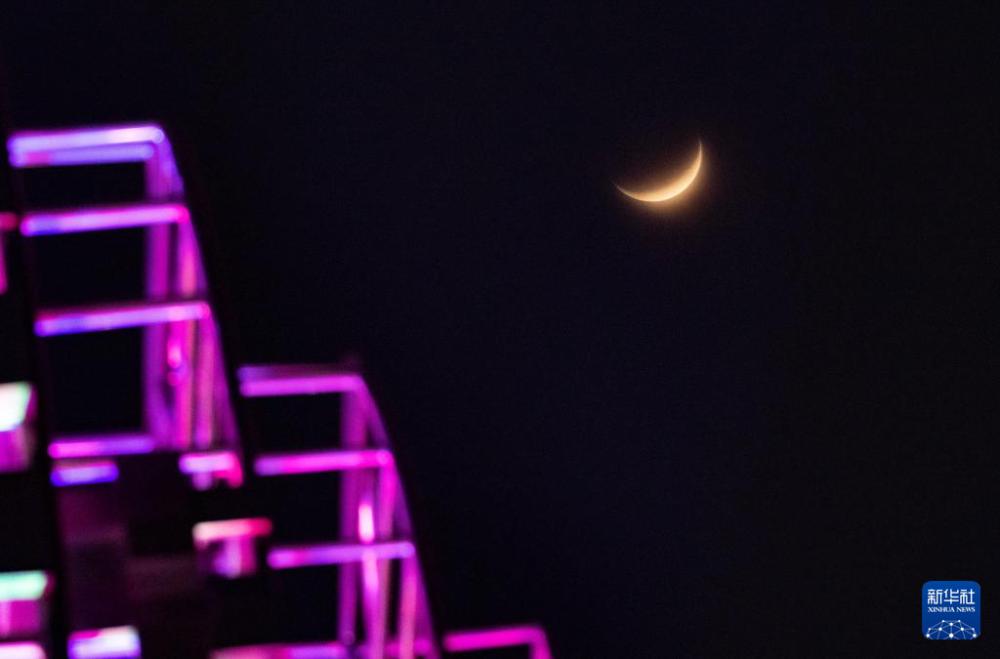 4月1日在黑龙江省北安市拍摄的“年度最大蛾眉月” 。