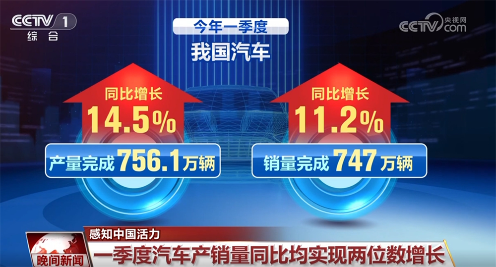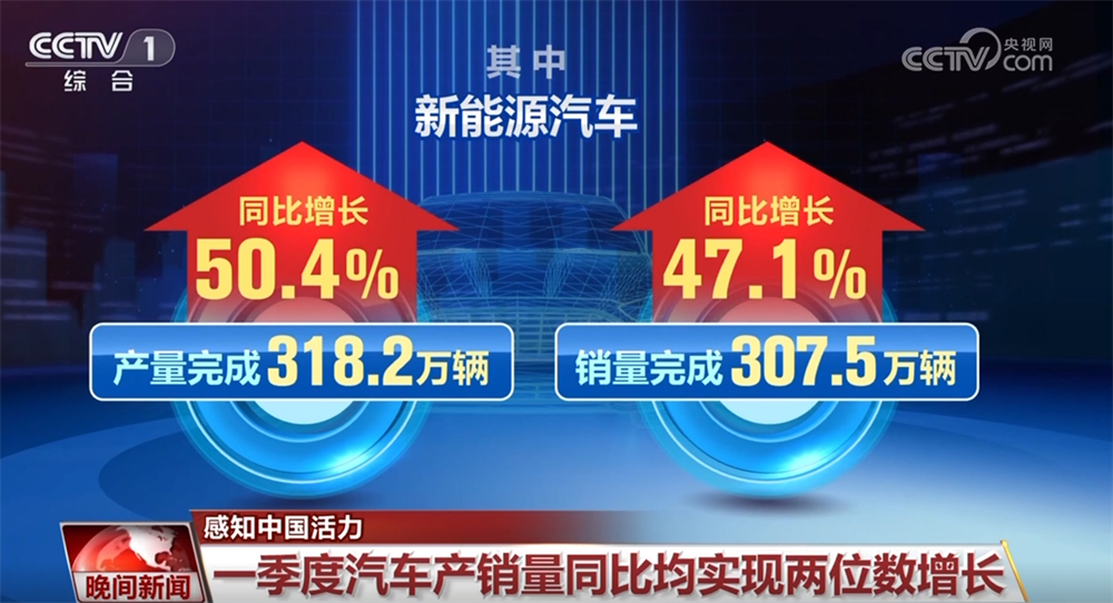 中国汽车工业协会11日发布的最新信息显示,今年一季度,我国汽车产销分别完成756.1万辆和747万辆,同比分别增长14.5%和11.2%。其中,新能源汽车产销分别完成318.2万辆和307.5万辆,同比分别增长50.4%和47.1%,新能源汽车新车销量达到汽车新车总销量的41.2%。整车出口保持增长,海外影响力不断提升,其中新能源汽车出口44.1万辆,同比增长43.9%。