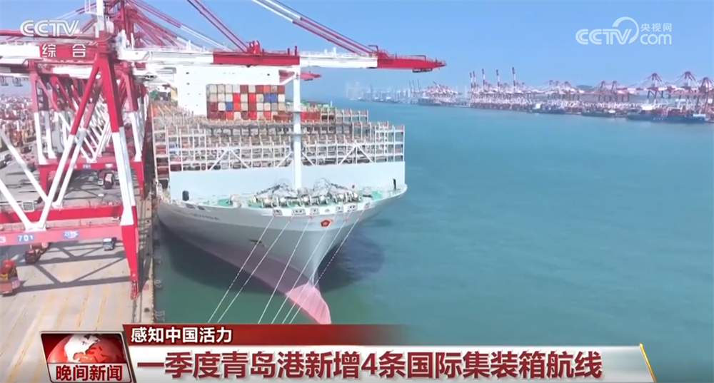 今年一季度,青岛港新增美东、地中海、东南亚等地区的4条国际集装箱航线,航线密度稳居我国北方港口首位。在青岛港前湾集装箱码头,“地中海瑞雅”号集装箱船正在紧张作业,这艘船装载的是到共建“一带一路”国家的货物,在青岛港将装卸21355个集装箱,创出近期单船装卸量新高。截至目前,青岛港国际集装箱航线超过230条,通达全球180多个国家和地区的700多个港口。