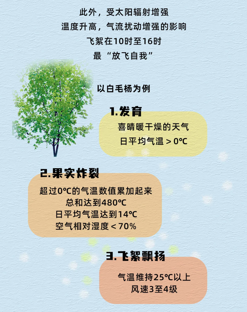 已陆续进入杨絮盛飞期、柳絮始飞期