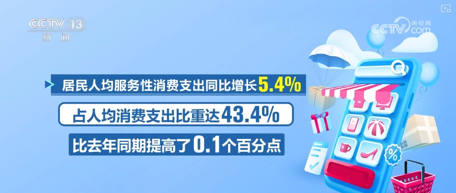 服务消费稳步增长。服务零售额同比增长5.0%,增速比同期商品零售额快0.4个百分点。居民人均服务性消费支出,同比增长5.4%,占人均消费支出比重达43.4%,比2024年同期提高了0.1个百分点,餐饮收入1.4万亿元,同比增长了4.7%。