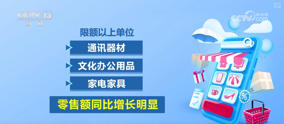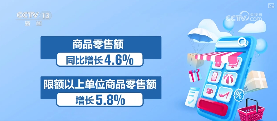 商品消费亮点纷呈。商品零售额同比增长4.6%,限额以上单位商品零售额增长5.8%。以旧换新政策持续显效,乘用车零售量同比增长5.8%。限额以上单位通讯器材、文化办公用品、家电家具零售额同比增长明显。升级类商品增长较好,体育娱乐用品零售额增长25.4%。