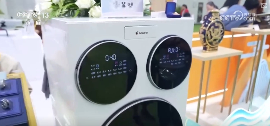 在海南国际会展中心8号展厅的山东展区,可以看到三桶洗衣机和独特口味的崂山白花蛇草水,还有德州扒鸡等国货潮品。除了这些,也可以选择骑着专业的自行车边健身边逛消博会。随着全民健身的推广和普及,在山东的公交车站就可以随时随地来一场简单的健身。