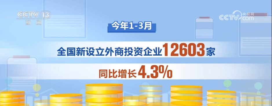 数据一:同比增长13.2%。商务部消息,今年3月全国实际使用外资同比增长13.2%。数据显示,今年1至3月,全国新设立外商投资企业12603家,同比增长4.3%;实际使用外资金额2692.3亿元人民币。从行业看,制造业实际使用外资715.1亿元人民币,服务业实际使用外资1933.3亿元人民币。