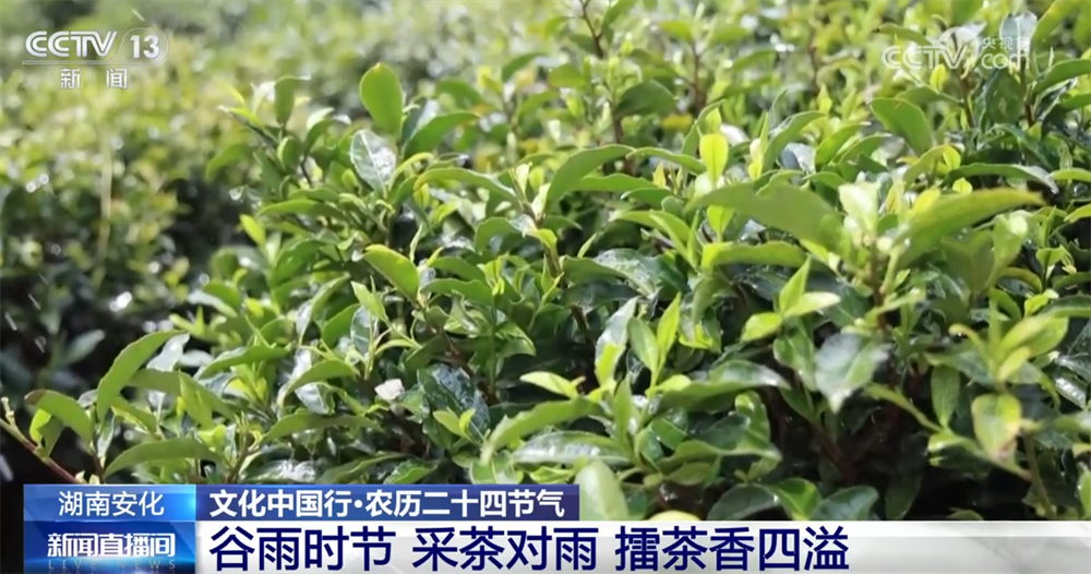 谷雨前后,气温回升、雨水丰沛,茶树经历漫长冬季的积累,芽叶内含物质达到均衡。在湖南安化的茶山上,人们正在采摘谷雨时节的叶片,制作醇厚甘润的黑茶。