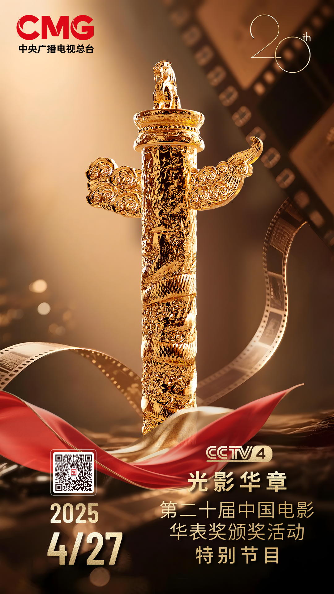 “共筑电影梦,激扬时代情”第二十届中国电影华表奖颁奖活动将于4月27日在山东省青岛市举行,对优秀电影创作进行总结与嘉奖。