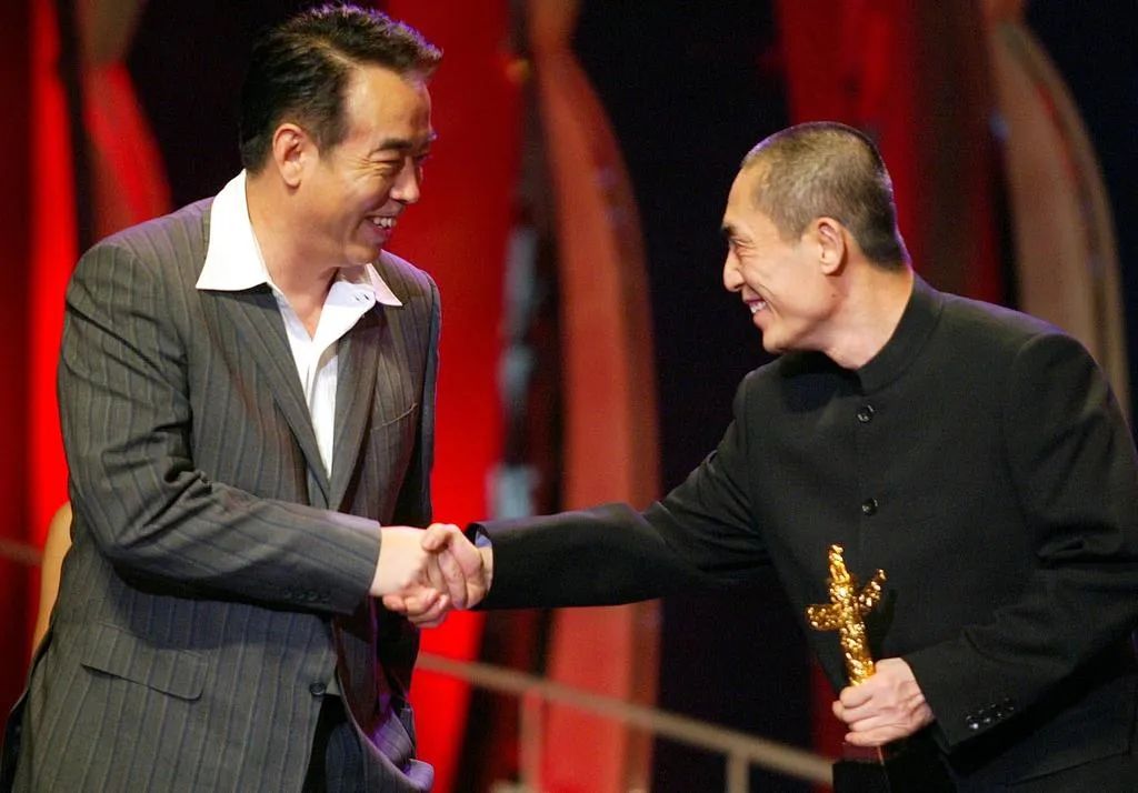 2003年第9届华表奖,陈凯歌为张艺谋(《英雄》)颁发特殊贡献奖