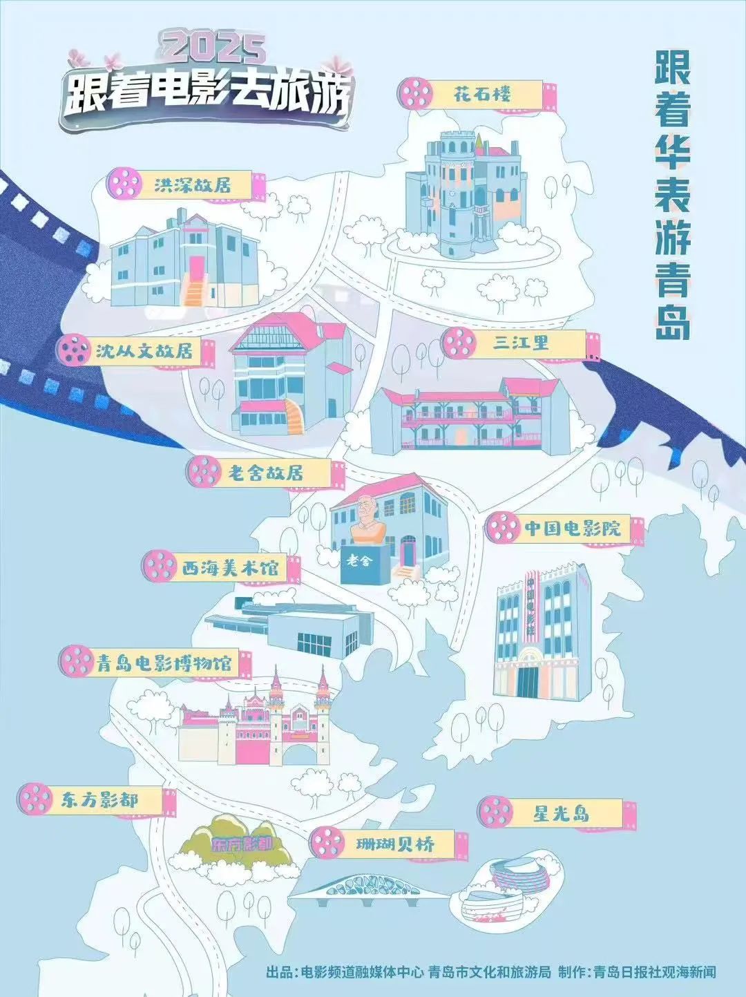 1935年的电影《劫后桃花》让青岛的海浪声首度融入银幕叙事。近年来,《手机》《抓娃娃》《送你一朵小红花》《被我弄丢的你》等多部影片曾在青岛取景。东方影都更是一路见证着《流浪地球》《封神三部曲》《蛟龙行动》《独行月球》等重工业巨制的诞生。