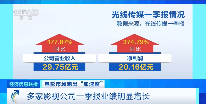得益于电影市场的强劲表现,多家影视公司一季报业绩迎来明显增长。