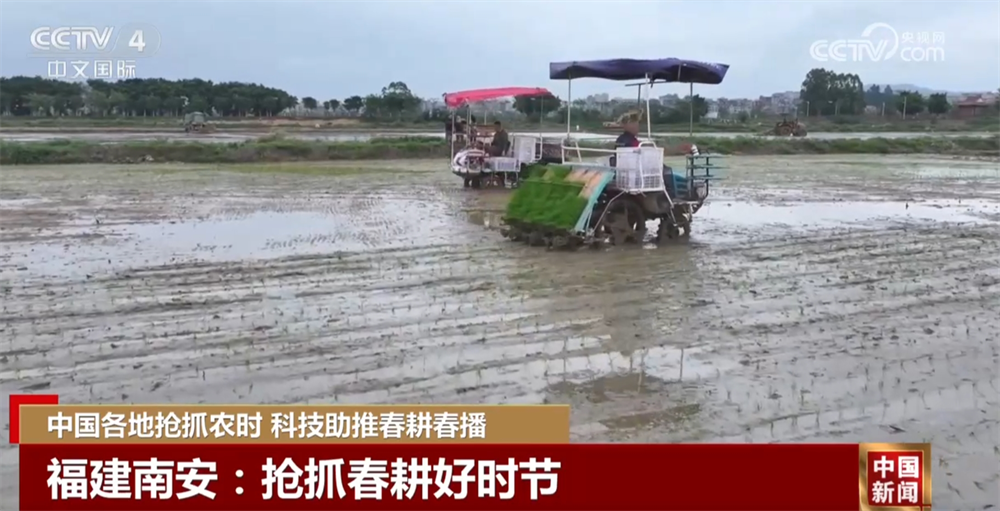 泉州南安是福建主要的早稻生产基地,眼下,农户们正抢抓农时开展插秧作业。据农户介绍,这里的农机都配备有北斗导航自动驾驶系统,农机可以实现高精度作业,有效避免漏耕或者重复耕种。农机手还会用植保无人机给田间施肥,一小时就能完成一百亩地的施肥工作。目前,南安的春耕作业已经实现了全程机械化。