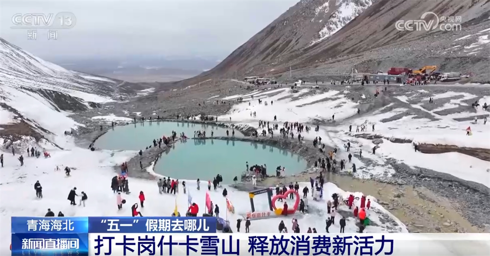 下面再给您推荐一个“五一”假期的好去处——青海海北州的岗什卡景区。眼下,全国大部分地区已是春暖花开,而岗什卡景区依旧银装素裹。在刚刚过去的周末,很多游客到那里打卡春日雪山。