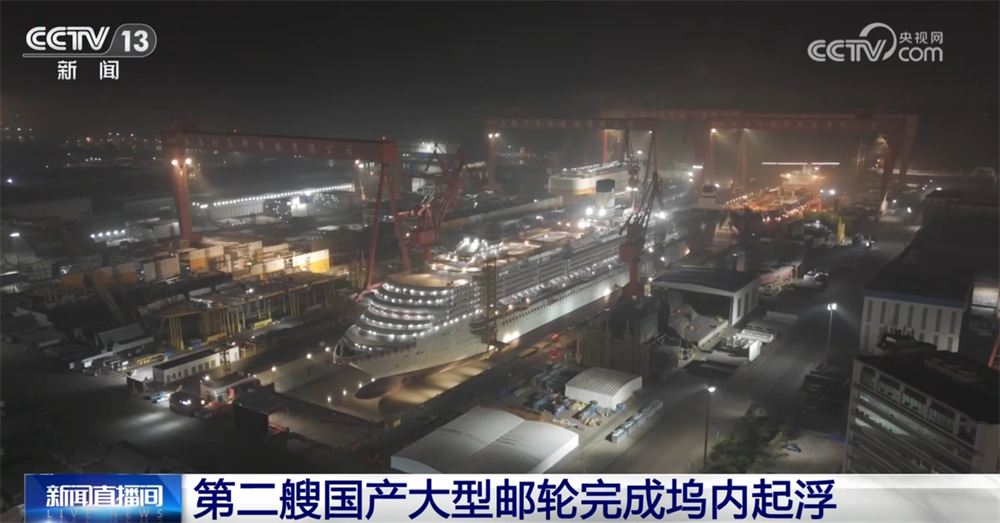 凌晨1点半,在上海外高桥造船的船坞中,随着工作人员“开闸放水”的口令发出,海水涌入船坞。经过6小时的坞内注水和实时观测,邮轮缓缓浮起,第二艘国产大型邮轮完成坞内起浮这一里程碑节点。随后,工作人员对邮轮进行了全船残余应力释放、测定重量重心等一系列关键工艺要素和技术指标的检验,进一步系统验证了国产大型邮轮在设计、工艺、总装建造等阶段所取得的重大科研成果,堪称一场“期中考”。
