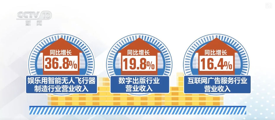 文化新业态行业快速发展。一季度,文化新业态行业实现营收14846亿元,同比增长12.5%,对全部规模以上文化企业营收增长的贡献率为83.5%。其中,娱乐用智能无人飞行器制造、数字出版、互联网广告服务等行业营收增速较高,同比分别增长36.8%、19.8%和16.4%。