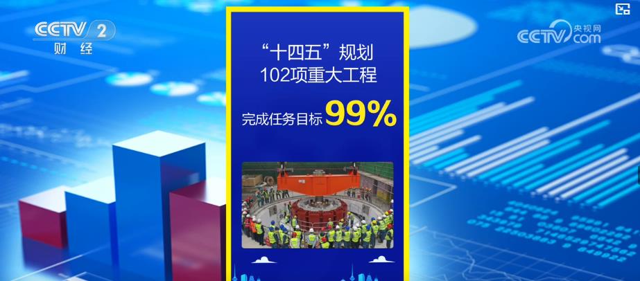 记者从国家发展改革委了解到,截至目前,我国“十四五”规划102项重大工程,涉及能源、交通、新基建等领域的5000多个具体项目中,已完成规划任务目标的占比达到99%。