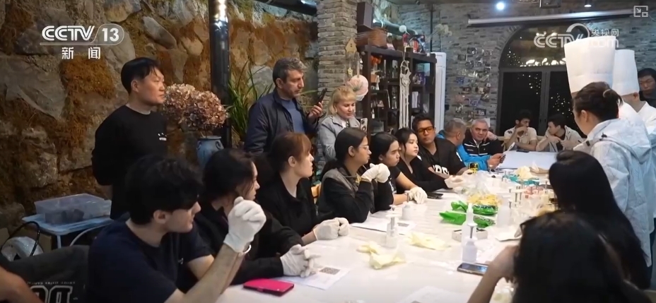除了丰富的文创业态与山水资源,在下榻的民宿,这些国际友人在体验中式糕点制作技艺的同时,了解了中国美食文化。