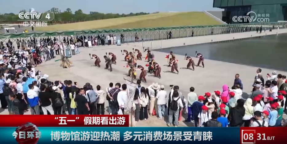 “五一”假期,博物馆游也迎来参观热潮。在河南安阳殷墟宫殿宗庙遗址、博物馆广场等地,以“商朝奇遇记”为主题,联动推出实景演出和古装巡游,让游客感受不一样的殷商文化。在殷墟博物馆,一场特别的“馆长带您逛展厅”活动正在进行。