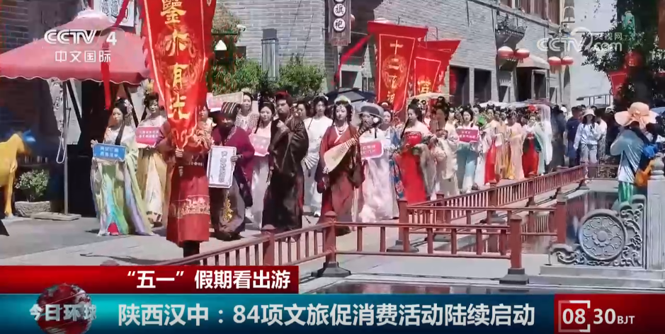 在陕西汉中,84项促消费系列活动也将在“五一”期间陆续启动。假期首日,在兴汉胜境景区,500余名汉服爱好者以汉服巡游、礼敬先祖祈福仪式等方式,为市民游客奉献一场汉文化盛宴。
