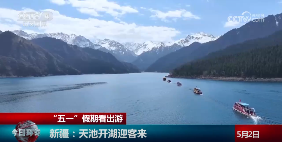 每年冬天,海拔1900多米的天山天池湖面封冻,封冻期达100多天。“五一”前夕,新疆阜康市天山天池景区冰雪消融,正式迎来“开湖”。