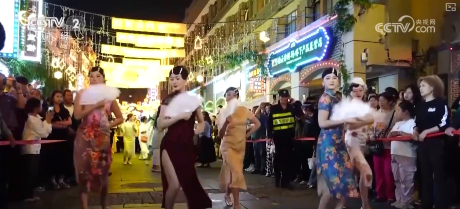 随着夜幕降临,在连云港民主路老街,悠扬的老唱片旋律响起,霓裳歌舞、街头杂耍轮番上演,依托街区的历史遗存老建筑,在灯光和音乐的映衬下,让游客们仿佛在一瞬间穿越了时光。