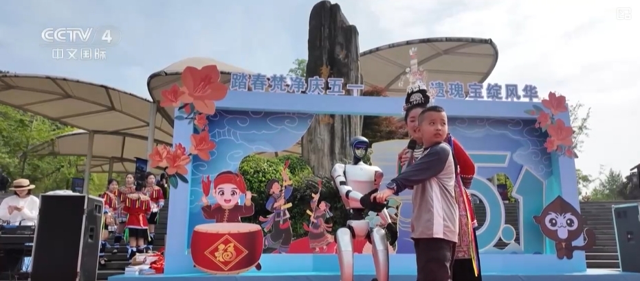 “五一”假期·出游 贵州梵净山:机器人舞蹈秀吸引游客