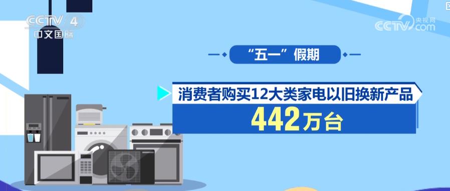 在“以旧换新”政策带动下,“五一”假期,家用电器和音像器材销售收入同比增长167.5%,智能手机等消费电子产品纳入购新补贴范围,通讯器材销售收入同比增长118%,家具销售收入同比增长1.7倍。