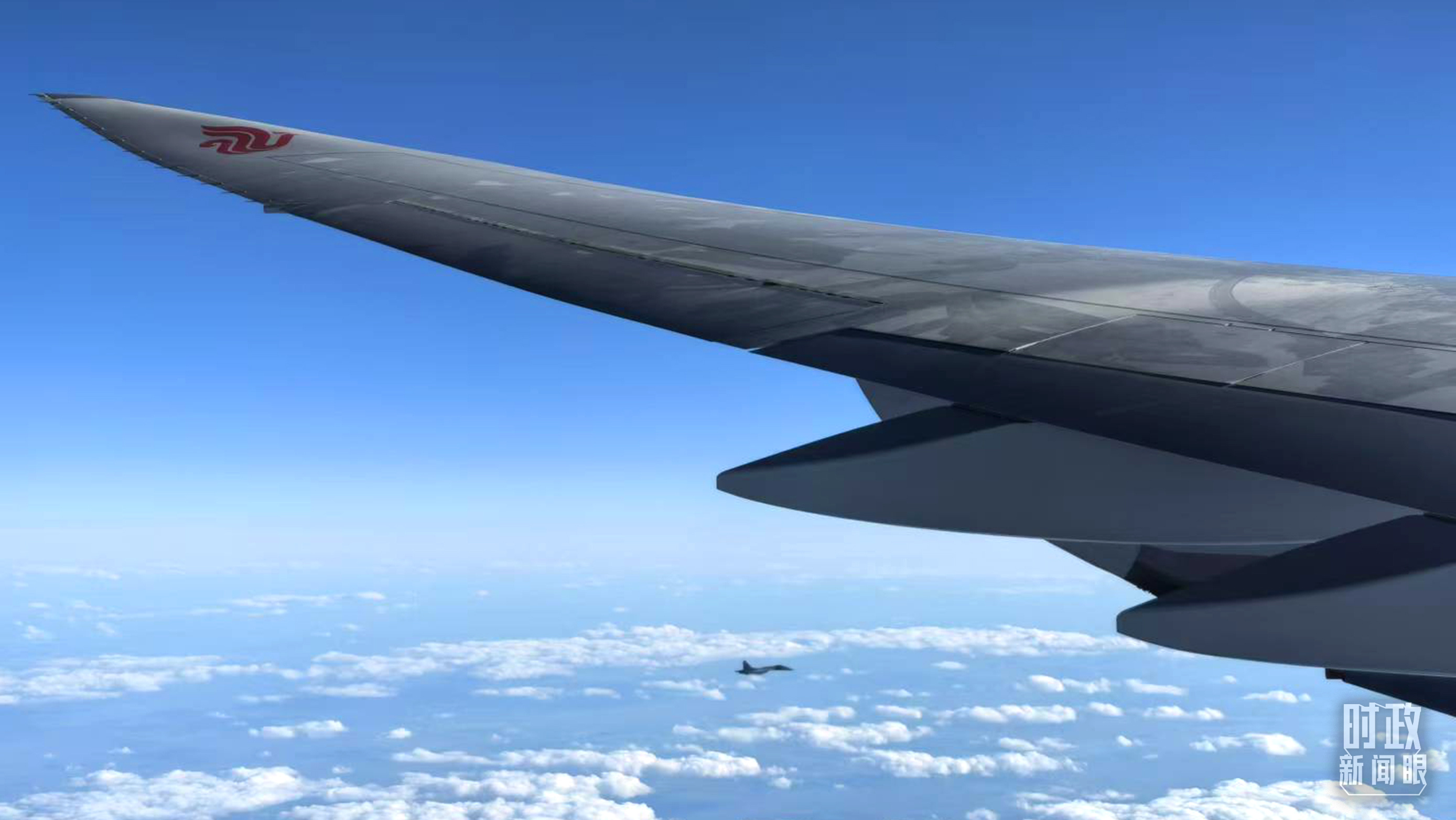 △俄罗斯战机升空护航。(总台央视记者李铮拍摄)