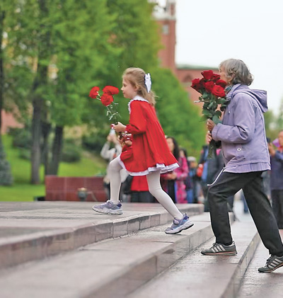 俄罗斯民众向莫斯科无名烈士墓献花。《中国经济周刊》记者 肖 翊摄