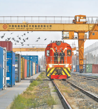一列中欧班列缓缓驶入新疆霍尔果斯铁路口岸站。 刘 新摄(影像中国)
