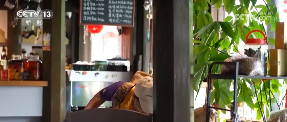 在“环浙步道”欢潭古村段旁,有一个开设在咖啡店里的“土货集市”,步道吸引来的人流让周边村民自家的农产品有了新销路。