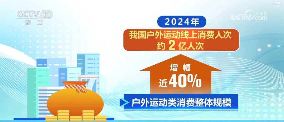记者从国家体育总局体育经济司了解到,2024年,我国户外运动线上消费人次约2亿人次,户外运动类消费整体规模增幅近40%。