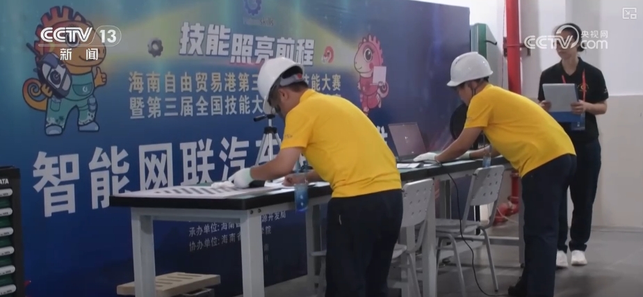 在第三届海南自贸港职业技能大赛现场,近1200名选手在70个竞赛项目进行技能比拼。和往届相比,2025年新增了无人机植保、智能网联汽车装调运维、数字孪生应用技术、污水处理等20个竞赛项目,突出绿色低碳技术技能应用。一些选手跨专业参赛,提升自己的复合能力。