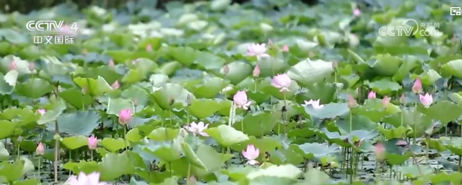 在广西南宁,狮山公园内的数万株荷花也陆续迎来了花期,池塘里成片的荷花迎着阳光热烈绽放,与碧绿的荷叶相互点缀,相映成趣。许多市民游客闻香而来,穿梭于荷塘的曲桥步道上,感受荷花的千姿百态。