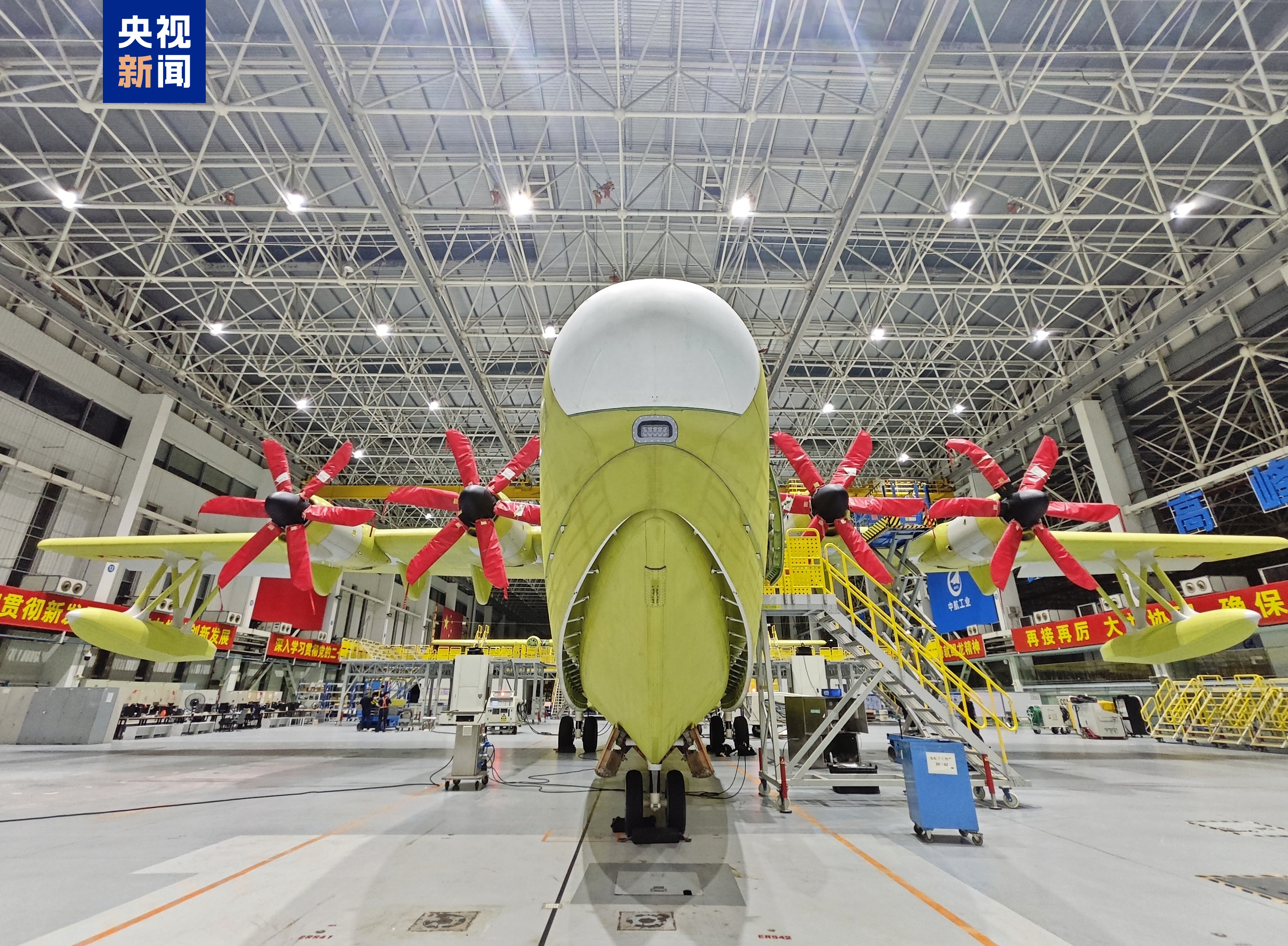 ·国产水陆两栖大飞机AG600批产首架机完成总装下线。