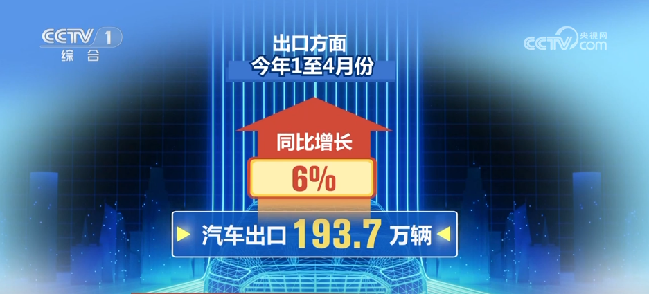 在出口方面,今年1至4月份,汽车出口193.7万辆,同比增长6%。其中,新能源汽车出口64.2万辆,同比增长52.6%。