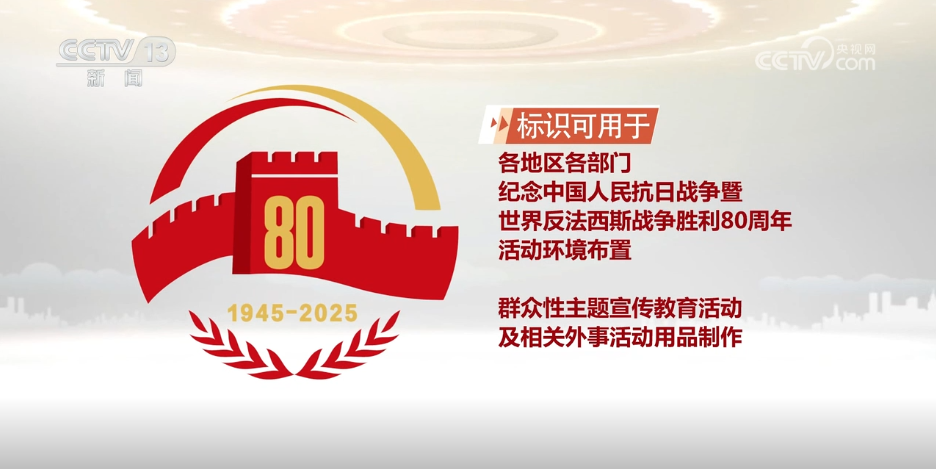 标识可用于各地区各部门纪念中国人民抗日战争暨世界反法西斯战争胜利80周年活动环境布置、群众性主题宣传教育活动及相关外事活动用品制作。