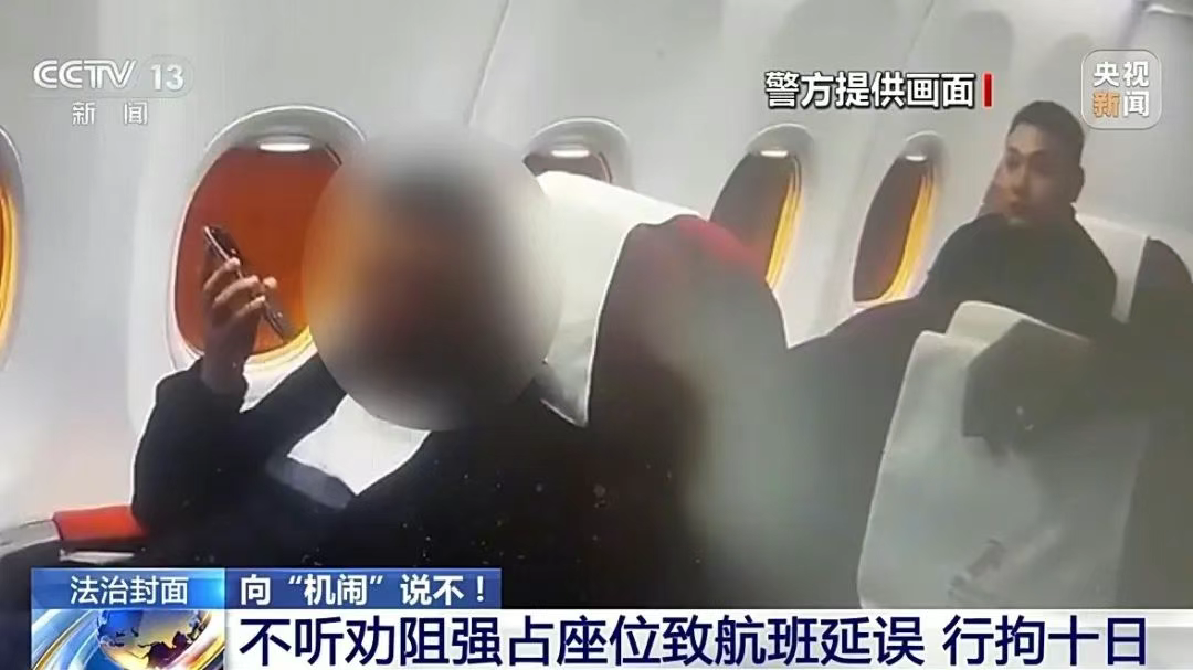 2024年3月18日,ZH8383次航班上,一醉酒乘客强占座位造成航班延误约30分钟,被公安机关依法行政拘留十日。