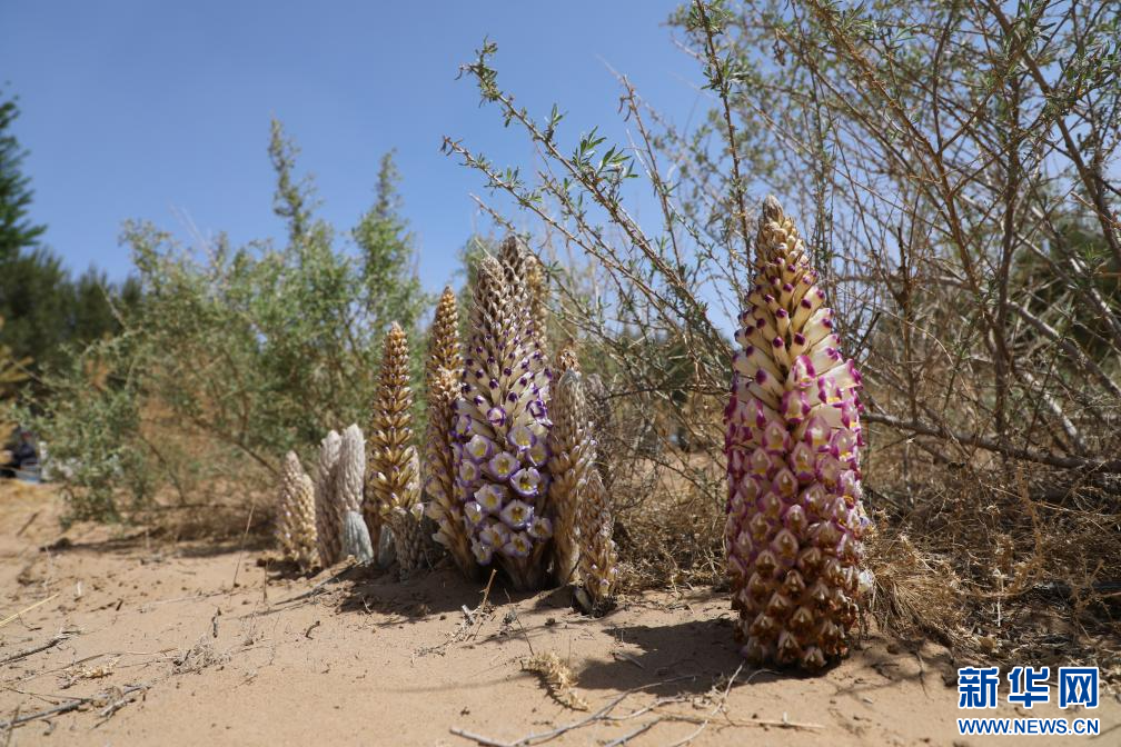 内蒙古磴口县防沙治沙项目区四翅滨藜肉苁蓉。新华社记者 李云平 摄