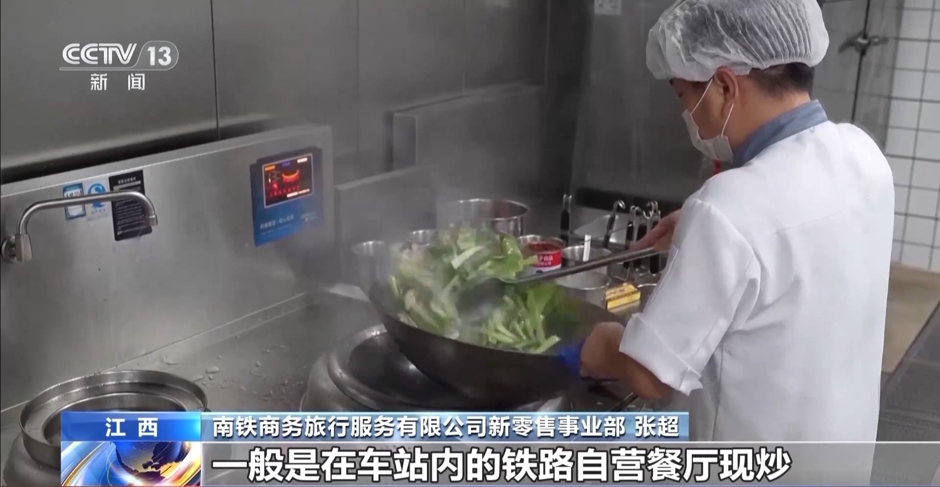 南铁商务旅行服务有限公司新零售事业部 张超:高铁热链餐食一般在车站内的铁路自营餐厅现炒,通过保温配送,送达全程温度都保持在60℃以上。